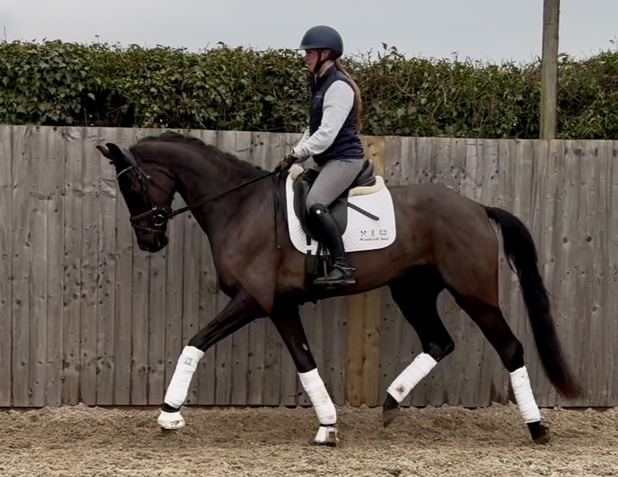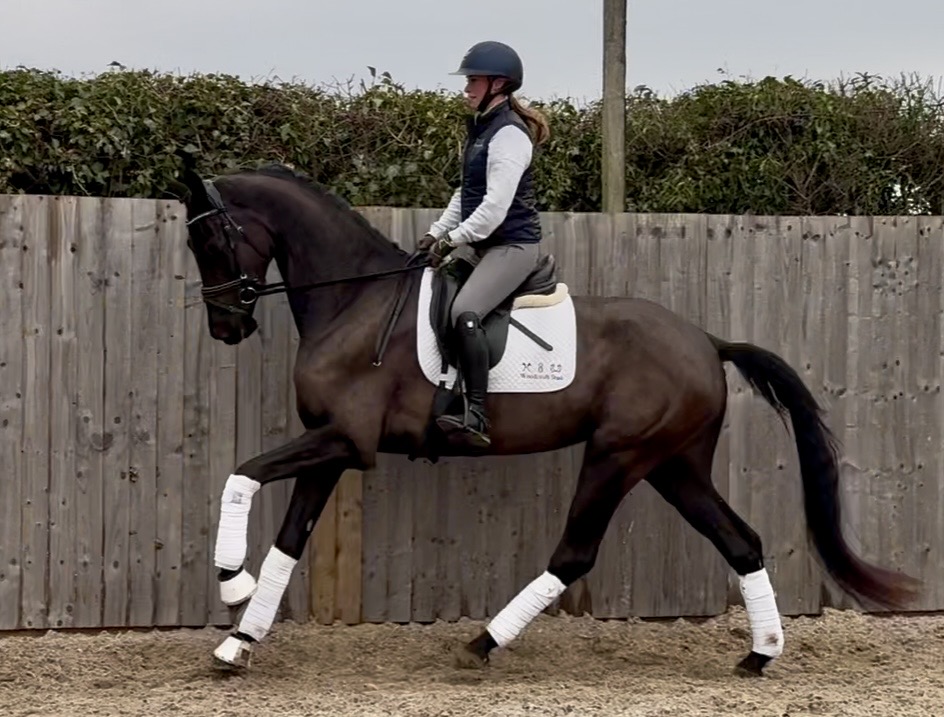 Rising 4yr old born 2022 KWPN 16.3h Black Mare By Koning (Governor, Totilas) / Hometown (Apache). Very special elegant mare with world class paces and a lovely temperament, good recent vetted and X-rays done.